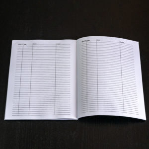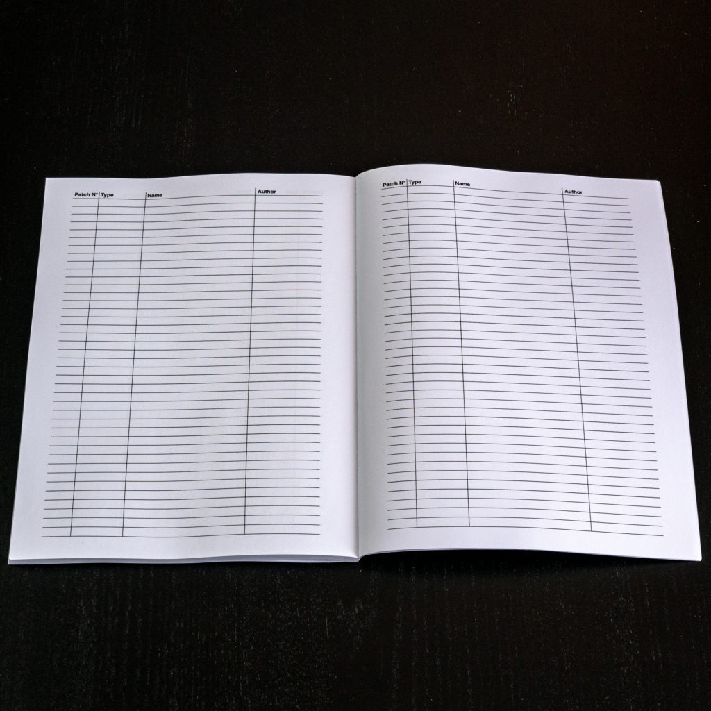 Notebook of 134 pages, 128 Blank Patch Sheets for Model D Synthesiser, 4 Pages Patch List, 8,5 » x 11 » A4 Large Notebook